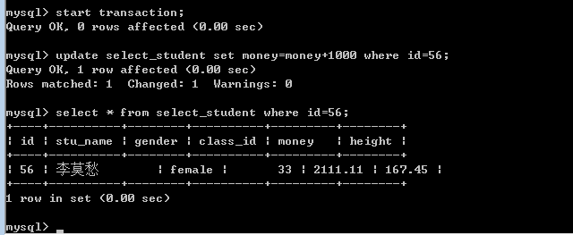 - 开启事务 start transaction,可以简写为 begin