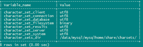 - character_set_system:操作系统字符集,无需设置,总是 utf8
