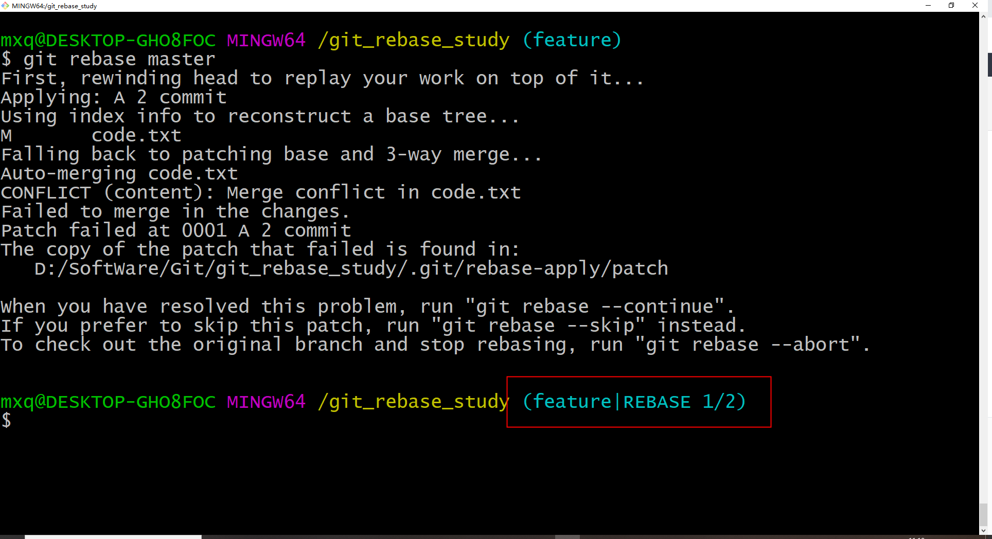 ", then run "git rebase --continue". You can instead skip this commit: run "git rebase --skip". To abort and get back to the state before "git rebase", run "git rebase --abort".