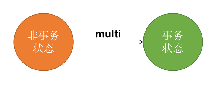 multi 命令可以让客户端从非事务模式状态,变为事务模式状态,如下图所示: