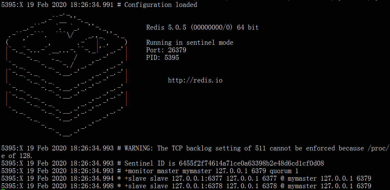 5547:X 19 Feb 2020 20:29:30.345 * +sentinel sentinel 6455f2f74614a71ce0a63398b2e48d6cd1cf0d08 127.0.0.1 26379 @ mymaster 127.0.0.1 6379