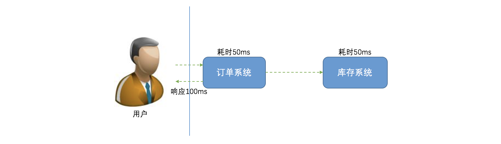 以电商 IT 架构为例,在传统紧耦合订单场景里,客户在电商网站下订单,订单系统接收到请求后,立即调用库存系统接口,库存减一,如下图所示