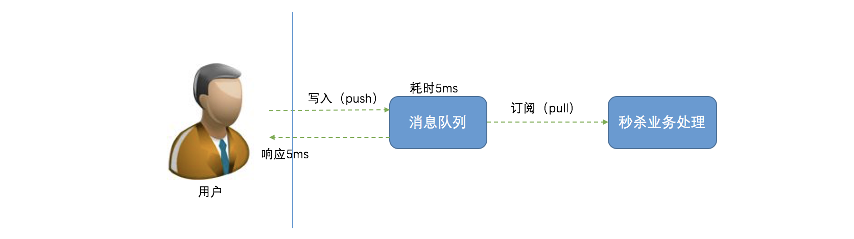 - 用户的秒杀请求,服务器接收后,首先写入消息队列,然后返回成功。假如消息队列长度超过最大数量,则直接抛弃用户请求或跳转到失败页面;