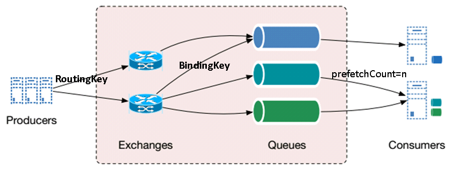 - 实现了代理架构,意味着消息在发送到客户端之前可以在中央节点上排队。此特性使得 RabbitMQ 易于使用和部署,但使得其运行速度较慢,因为中央节点增加了延迟,消息封装后也比较大;