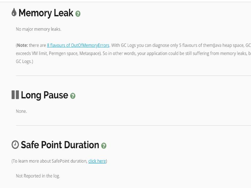 7. 内存泄漏、长暂停、安全点等信息 没有检测到内存泄漏。