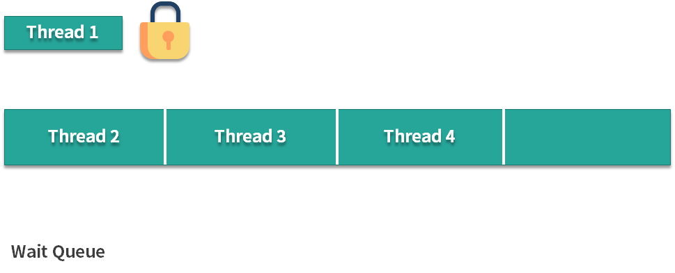 下面我们用图示来说明公平和非公平的场景,先来看公平的情况。假设我们创建了一个公平锁,此时有 4 个线程按顺序来请求公平锁,线程 1 在拿到这把锁之后,线程 2、3、4 会在等待队列中开始等待,然后等线程 1 释放锁之后,线程 2、3、4 会依次去获取这把锁,线程 2 先获取到的原因是它等待的时间最长。