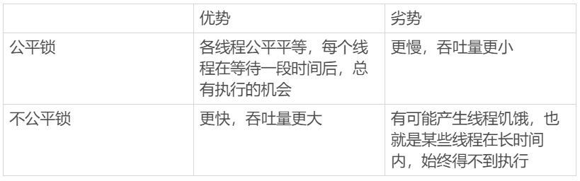 我们接下来对比公平和非公平的优缺点,如表格所示。