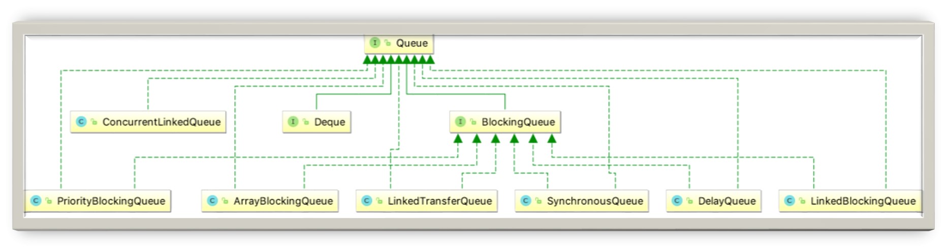 上图展示了 Queue 最主要的实现类,可以看出 Java 提供的线程安全的队列(也称为并发队列)分为 阻塞队列 和 非阻塞队列 两大类。