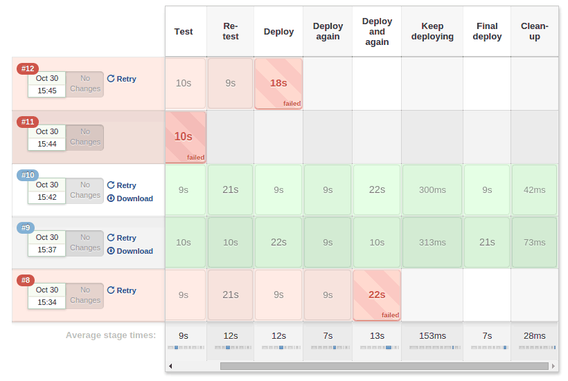 所以,使用 Docker 之后,任务的模块化很自然地被定义出来。通过管道图,可以查看每一步的执行时间。开发者也可以针对任务的需要,为每一个任务定义严格的性能标准,已作为之后测试工作的参考基础。