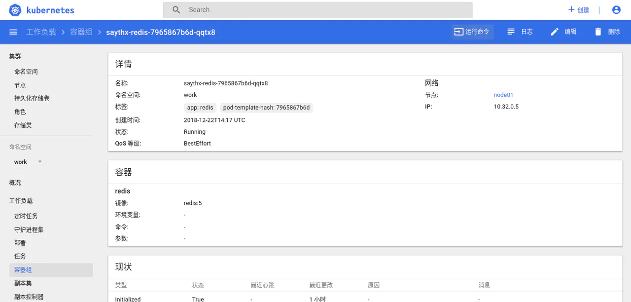 点击左侧的容器组,便可看到刚才部署的 Pod,