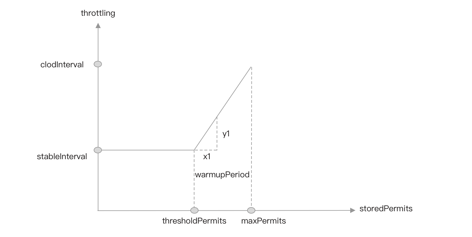 - 此时生产令牌的间隔时间等于 y1 的长度加上 stableInterval,在 Sentinel 中单位为秒。