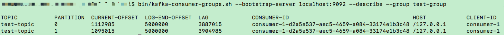 图中的 CURRENT-OFFSET 表示该消费者当前消费的最新位移,LOG-END-OFFSET 表示对应分区最新生产消息的位移,LAG 列是两者的差值。CONSUMER-ID 是 Kafka 消费者程序自动生成的一个 ID。截止到 2.2 版本,你都无法干预这个 ID 的生成过程。如果运行该命令时,这个消费者程序已经终止了,那么此列的值为空。