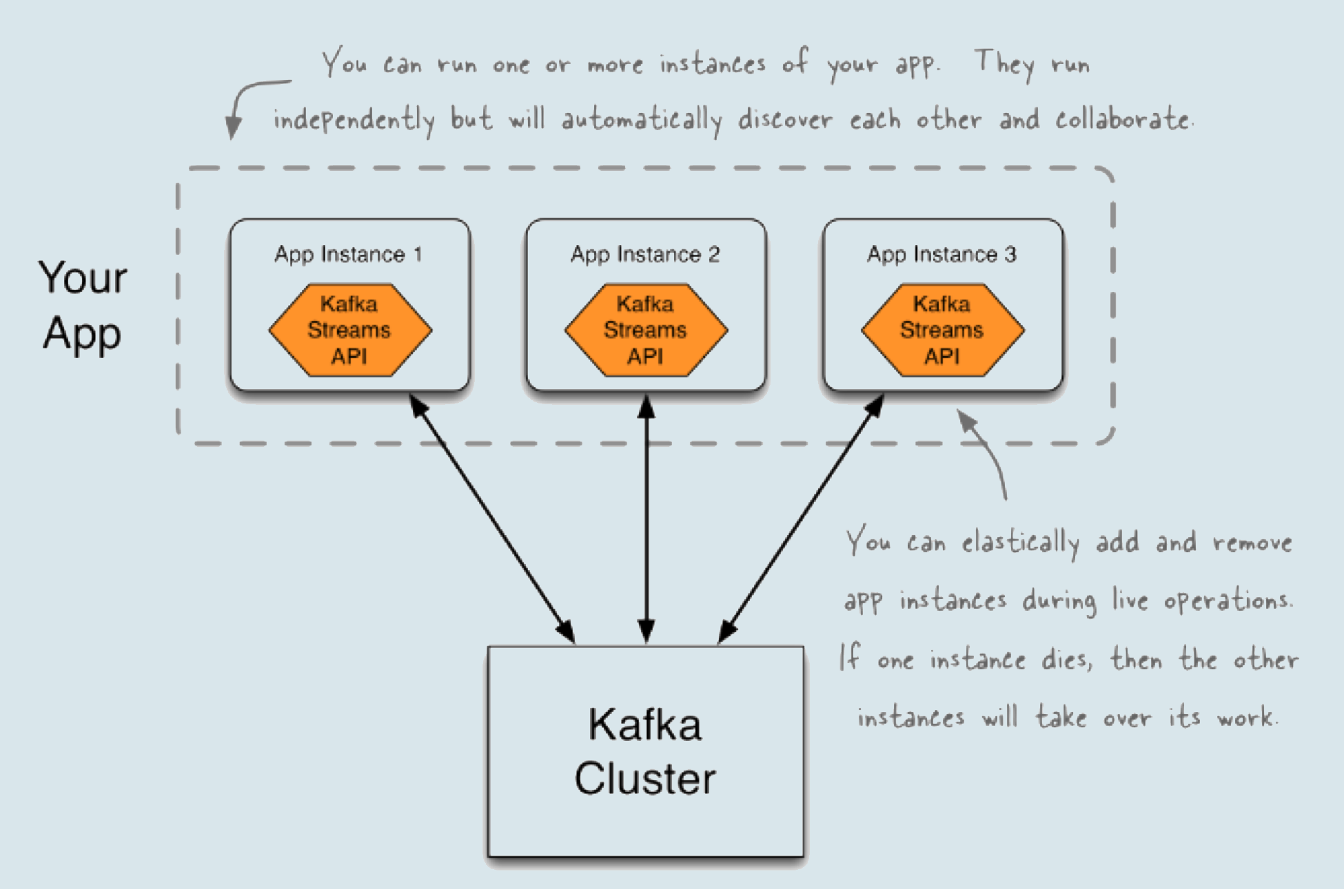 与其他流处理框架不同的是,它仅仅是一个类库,用它编写的应用被编译打包之后就是一个普通的 Java 应用程序。你可以使用任何部署框架来运行 Kafka Streams 应用程序。