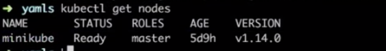 下一步我们利用 kubectl 来看一下这个集群中节选的状态,可以看到这个 master 的节点已经是 running 状态: