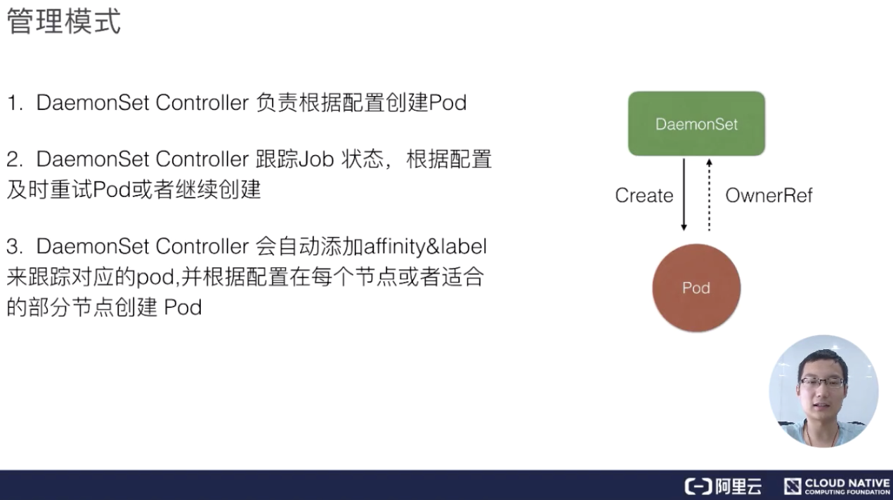 DaemonSet 也是 Kubernetes 提供的一个 default controller,它实际是做一个守护进程的控制器,它能帮我们做到以下几件事情: