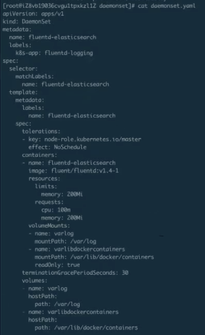 上图这个就是刚才 DaemonSet 的 yaml,会比刚才会多一些, 我们做一些资源的限制,这个都不影响。