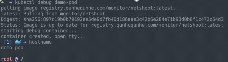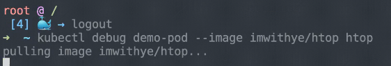 如果此时进行 logout 的话,相当于会把相应的这个 debug pod 杀掉,然后进行退出,此时对应用实际上是没有任何的影响的。那么通过这种方式可以不介入到容器里面,就可以实现相应的一个诊断。