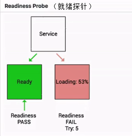 - 第二种是 Failure,Failure 表示的是这个 container 没有通过健康检查,如果没有通过健康检查的话,那么此时就会进行相应的一个处理,那在 Readiness 处理的一个方式就是通过 service。service 层将没有通过 Readiness 的 pod 进行摘除,而 Liveness 就是将这个 pod 进行重新拉起,或者是删除。