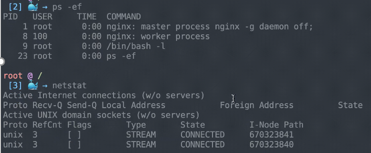 像这个例子里面,去查看类似像 hostname、进程、netstat 等等,这些其实都是和这个需要 debug 的 pod 是在同一个环境里面的,所以你之前这三条命令可以看到里面相关的信息。
