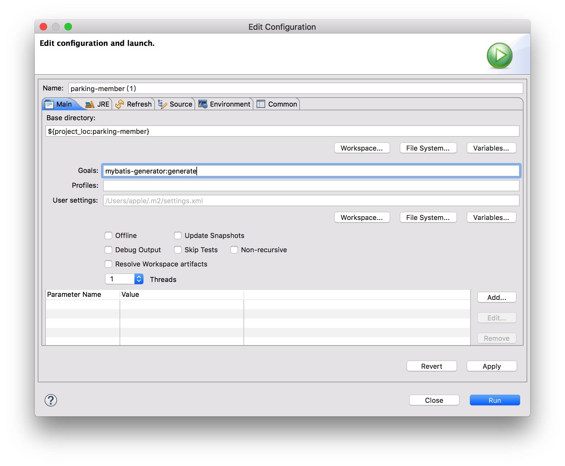 配置完成后,在项目名称” parking-member “ 上右键,弹出菜单中选择" Run As " —>" Maven build… ",在 Goals 栏目中输入如下命令: