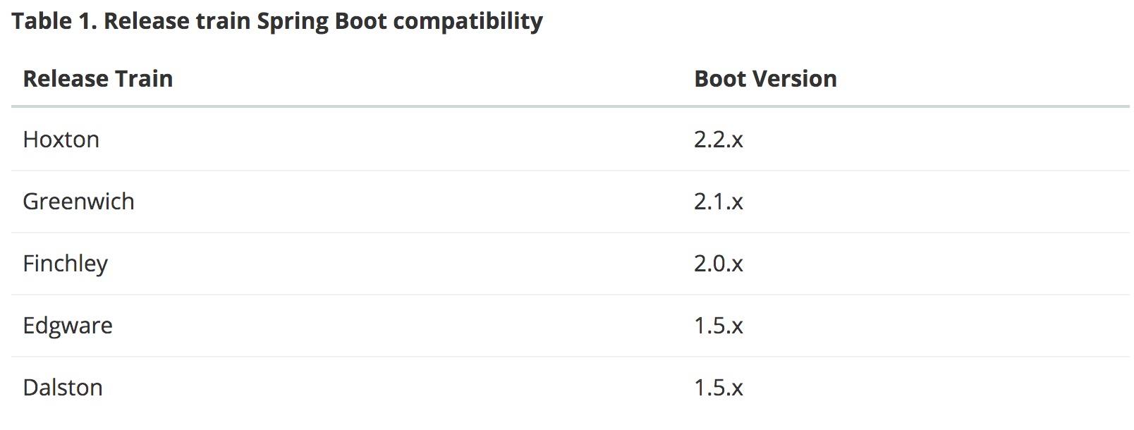 ( Spring Cloud 与 Spring Boot 的版本对应情况,来源于官网)