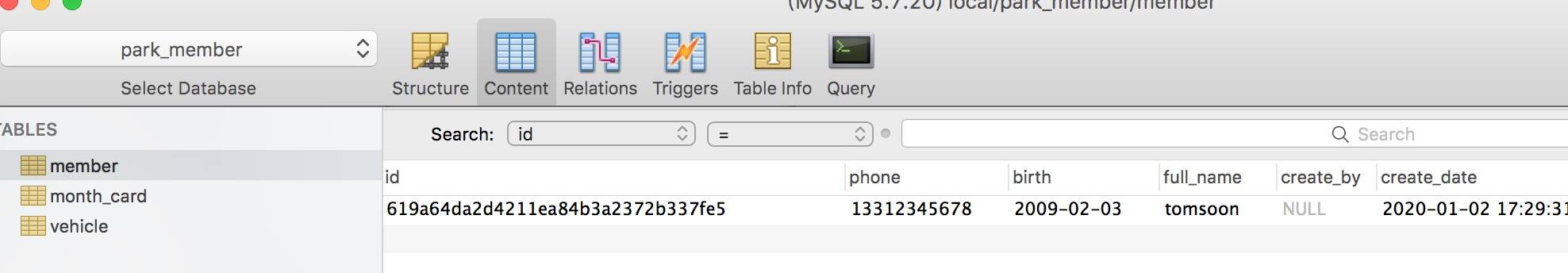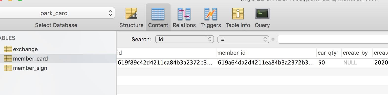 正常情况下,park-member,park-card 两个库中数据表均有数据生成。