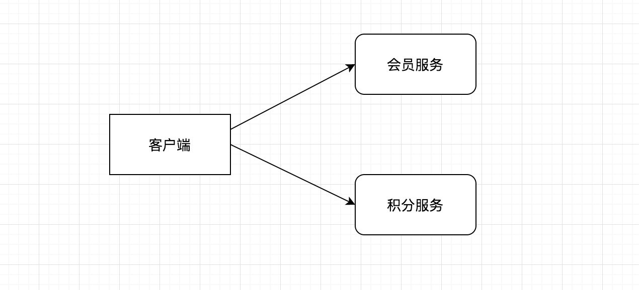 会员个人信息、车辆信息、月卡信息维护在会员库中,积分信息维护在积分库中。如果想一个页面同时展现这两块的数据,就必须由客户端发起两次接口调用,才能完整地将数据调用到,如下图所示: