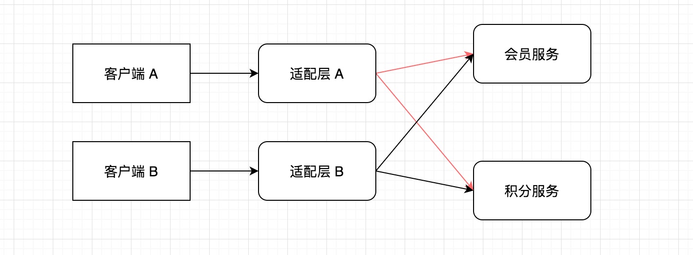 针对每个客户端,后端都构建一个适配层与之相对应,当一方需求变更时,仅需要对应的适配层修改即可,也无须变更更底层的后端服务。