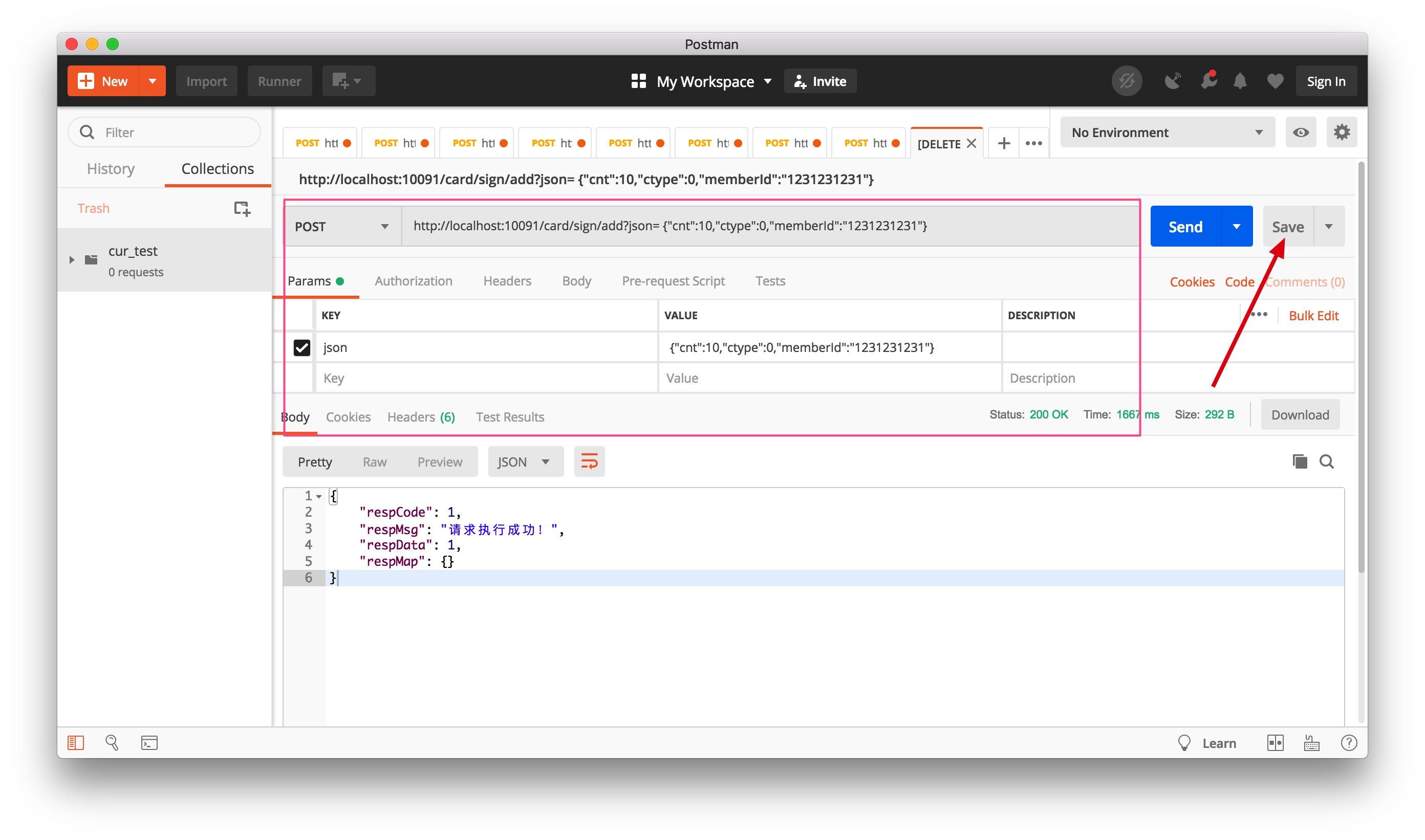 如何测试呢?可以代码中增加异常抛出,来测试请求是否重试 3 次,前端调用时,通过网关访问此服务调用,可以发现被调用次数是 4 次。