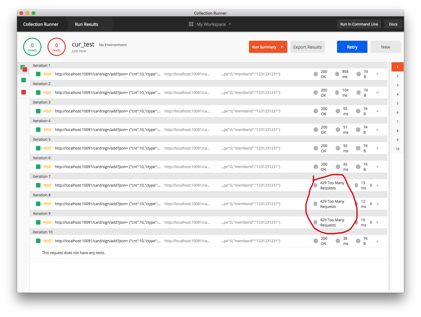 点击上图“Run”按钮,查看 Redis 命令的执行情况。查看 PostMan 控制台,可以看到有 3 次已经被忽略执行。