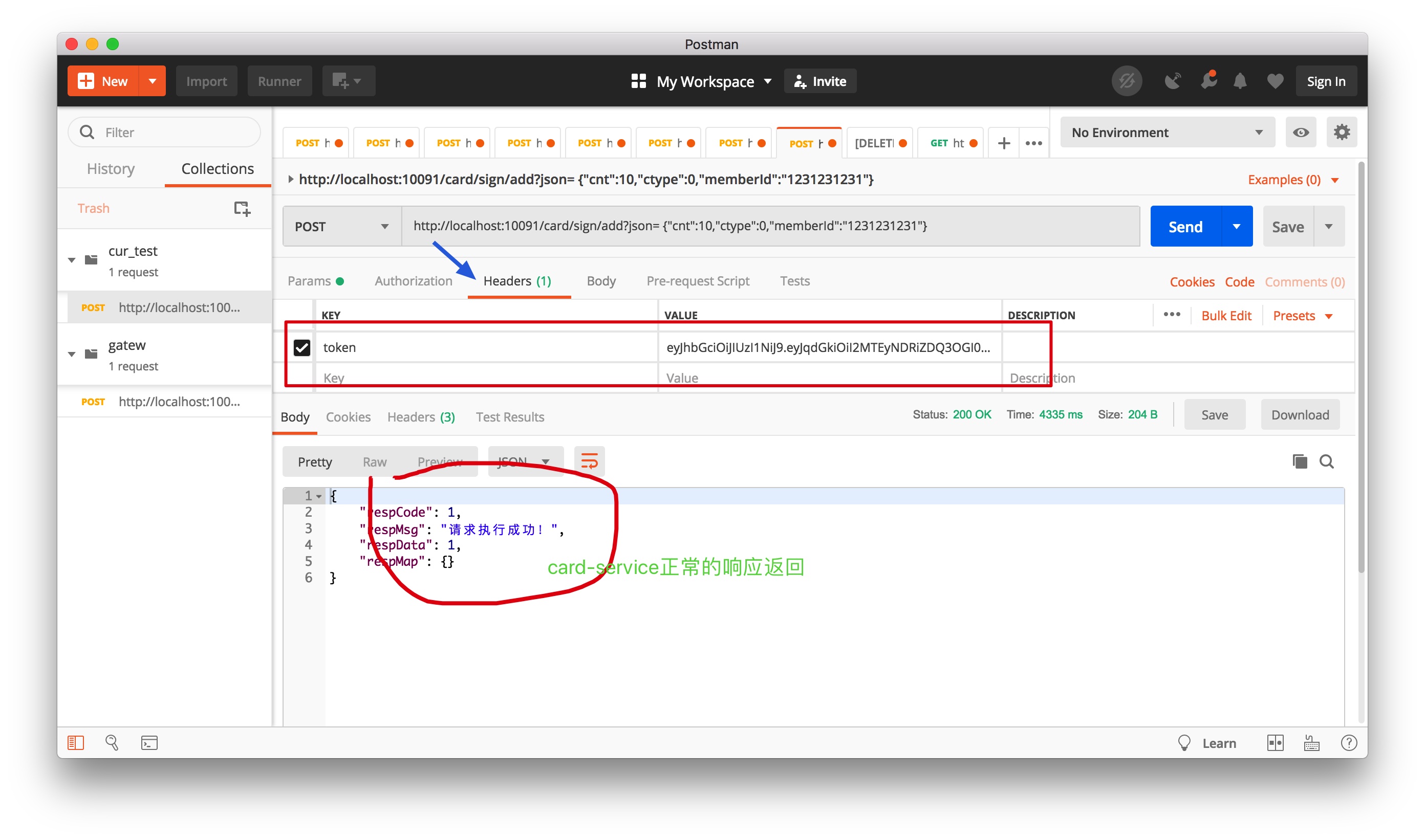 先用 JWTUtils 工具,输出一个正常的 token,采用 Postman 工具进行“商场用户日常签到功能请求”验证,发现请求成功。