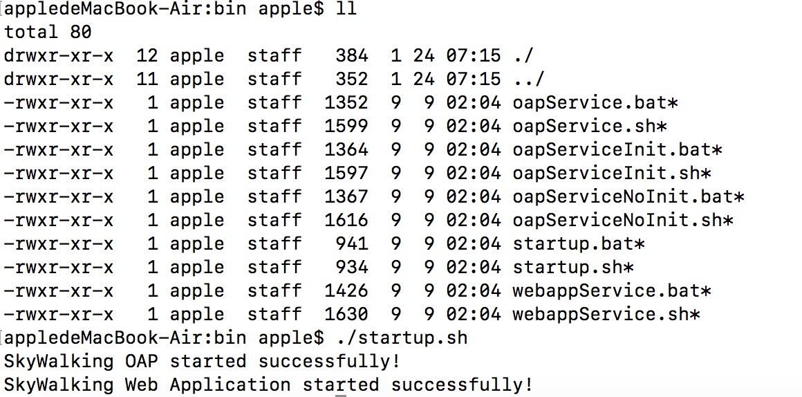 java -javaagent:/Users/apple/software/apache-skywalking-apm-bin/agent/skywalking-agent.jar -Dskywalking.agent.service_name=parking-member-service -Dskywalking.collector.backend_service=127.0.0.1:11800 -jar parking-member-service.jar