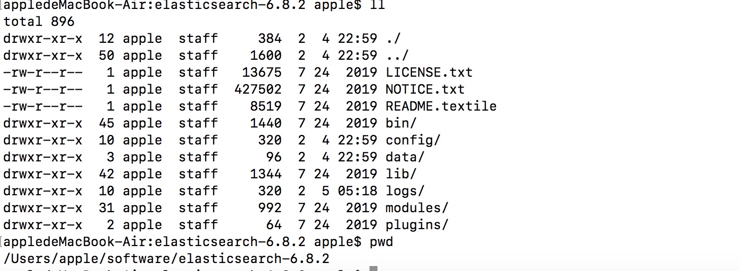 我下载的是 Mac 版本,注意版本兼容问题,本处采用 6.8.x,如果采用 ES 7+ 版本,在与 SkyWalking 融合时,会出现数据无法写入的情况。